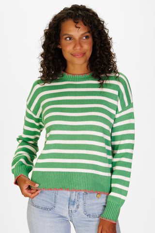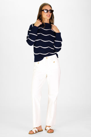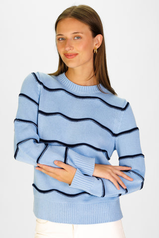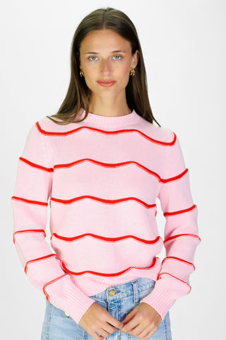 Lilac and Ivory Stripe Cotton Blaire Quarter Zip Sweater