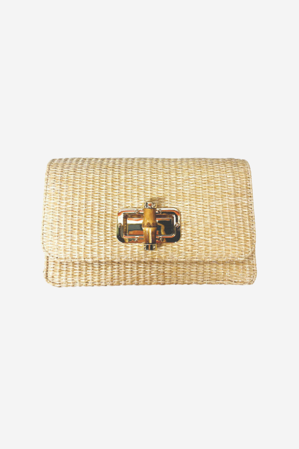 The Lilly straw foldover clutch with an optional crossbody strap is reminiscent of Charleston charm and resort relaxation. With just a touch of gold accent, you will shine as bright as the summer sun at your next party or night on the town.