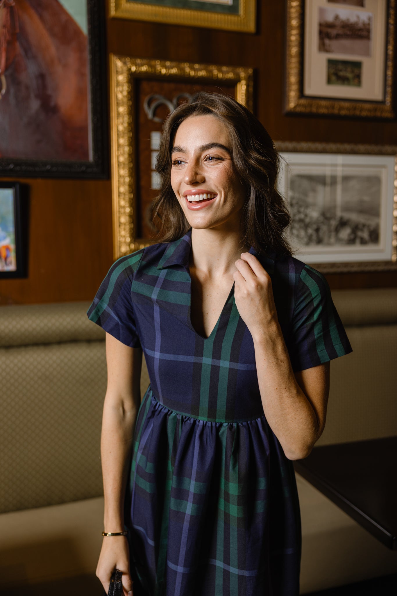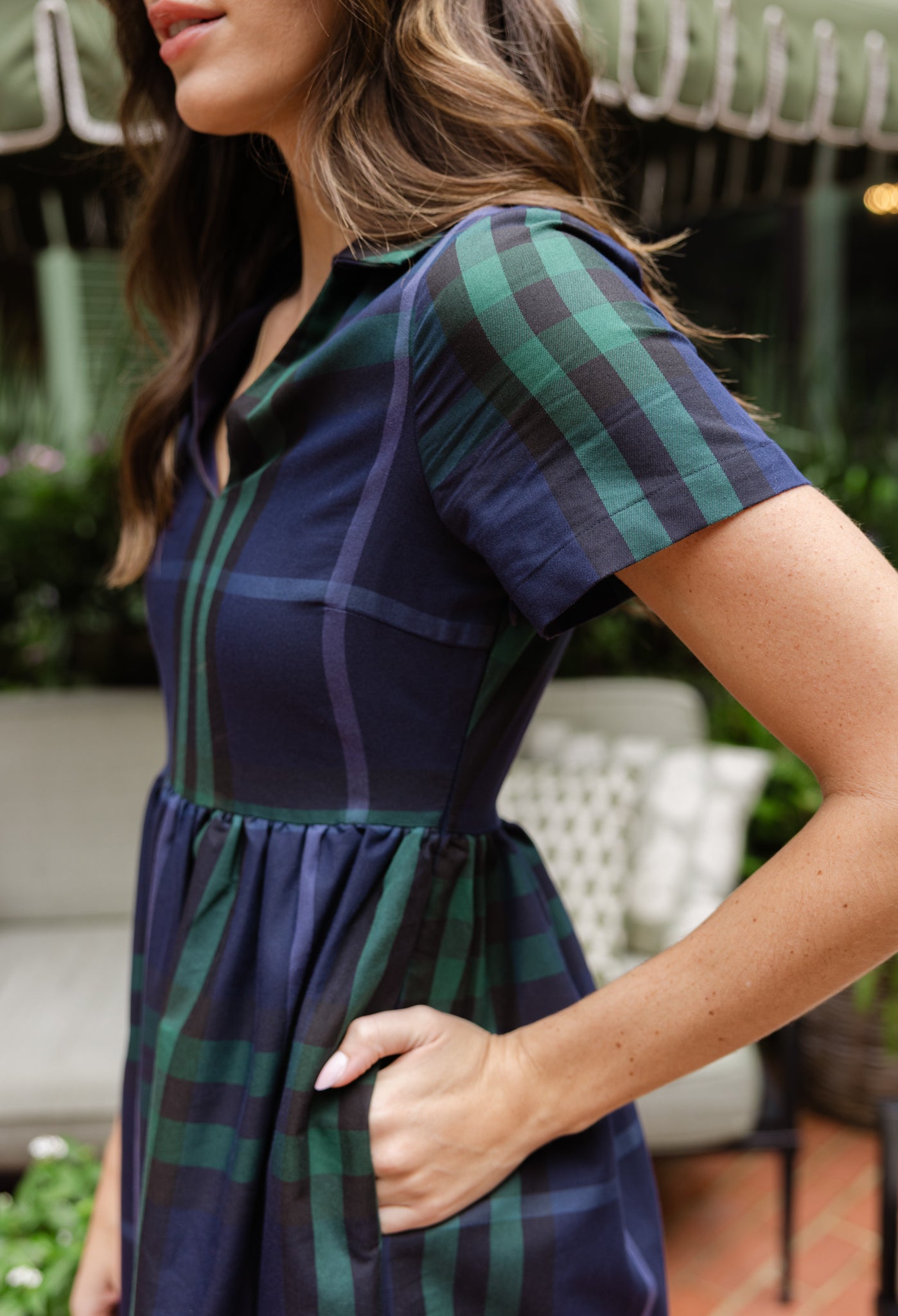 The women's Briggs Dress brings effortless polish to every occasion. Designed with a flattering fit-and-flare silhouette and a collared V-neckline, it’s a style that transitions seamlessly from workdays to holiday gatherings. In our signature Navy Plaid, this classic midi dress is both timeless and versatile, perfect with heels, boots, or flats.