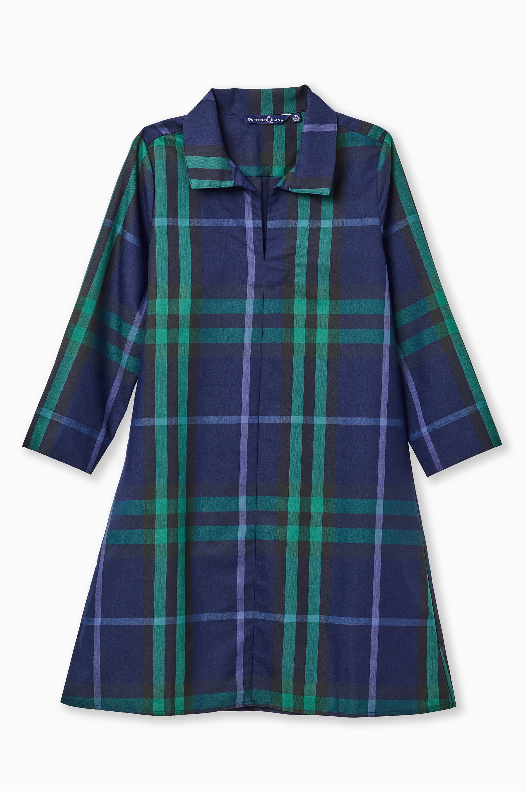 Our best-selling women's Victoria Dress is back, now in our favorite late fall-to-holiday pattern: a timeless navy plaid. This dress is effortlessly classic and endlessly flattering, with a polished A-line silhouette that features a chic V-neckline and a just-right length. The Victoria Dress pairs perfectly with boots or tights as the temperatures drop.