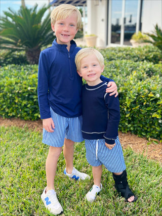 Boys Kipling Pull-On Short in Double Blue Seersucker