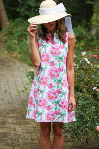 Match with mom in the girl's Goldie Dress with adorable ruffle neck detail and a full-tiered skirt!