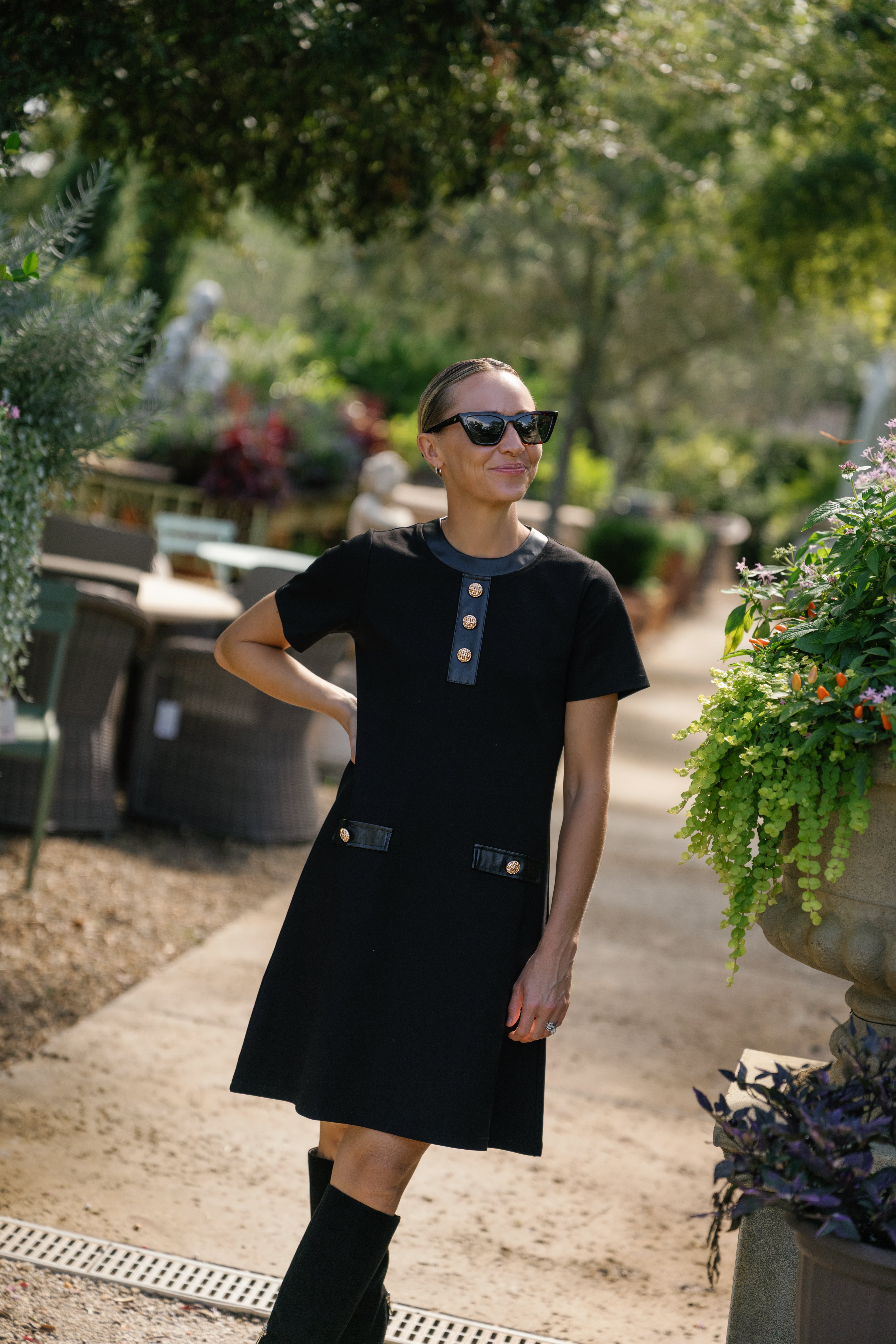 The women's Hill Dress combines structure and stretch for a perfectly polished fit this holiday season. Made from our signature ponte fabric, this style flatters every curve while keeping you comfortable all day long. Finished with signature gold buttons for a hint of shine: classic, elevated, and endlessly versatile.