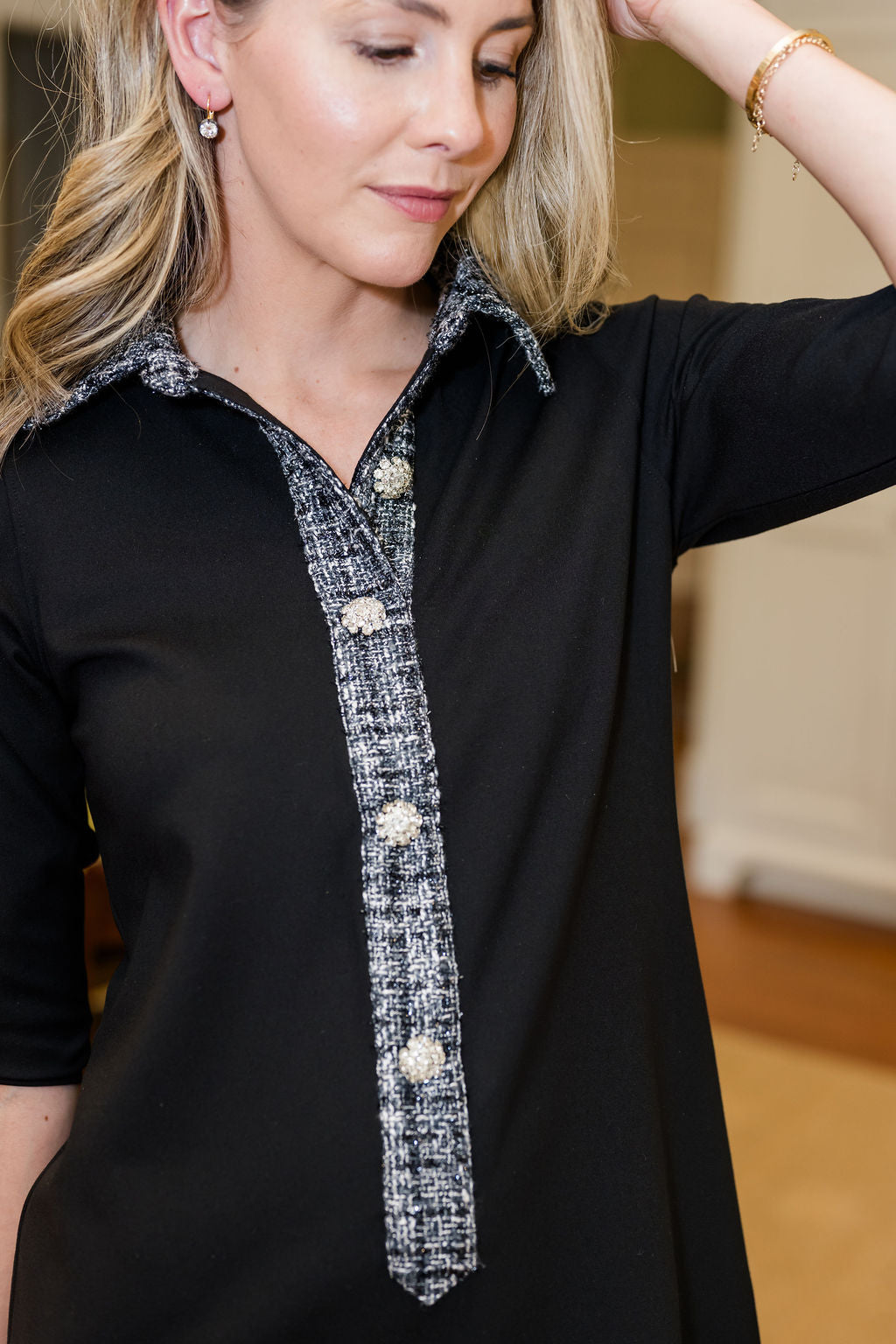 Shimmer tweed placket