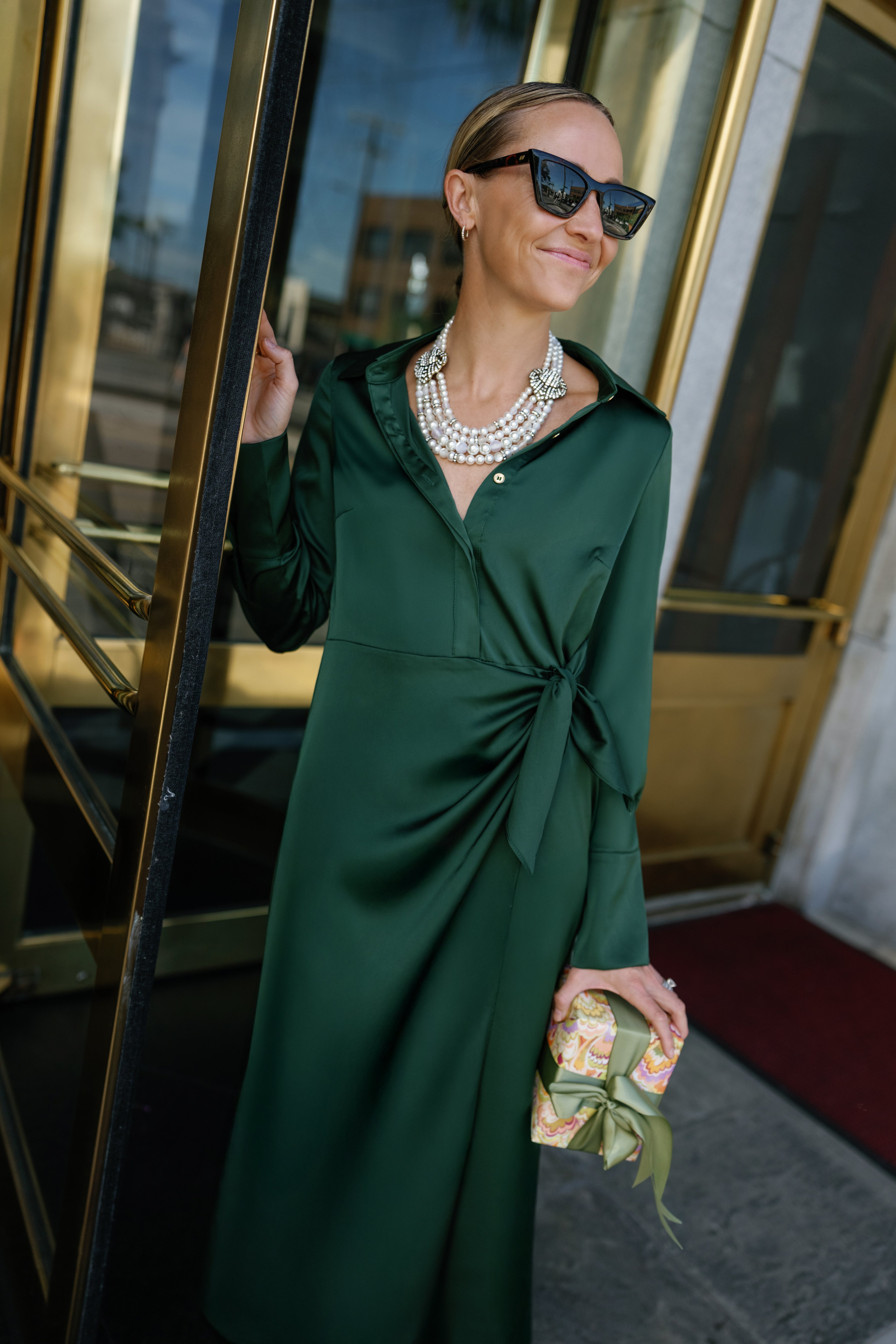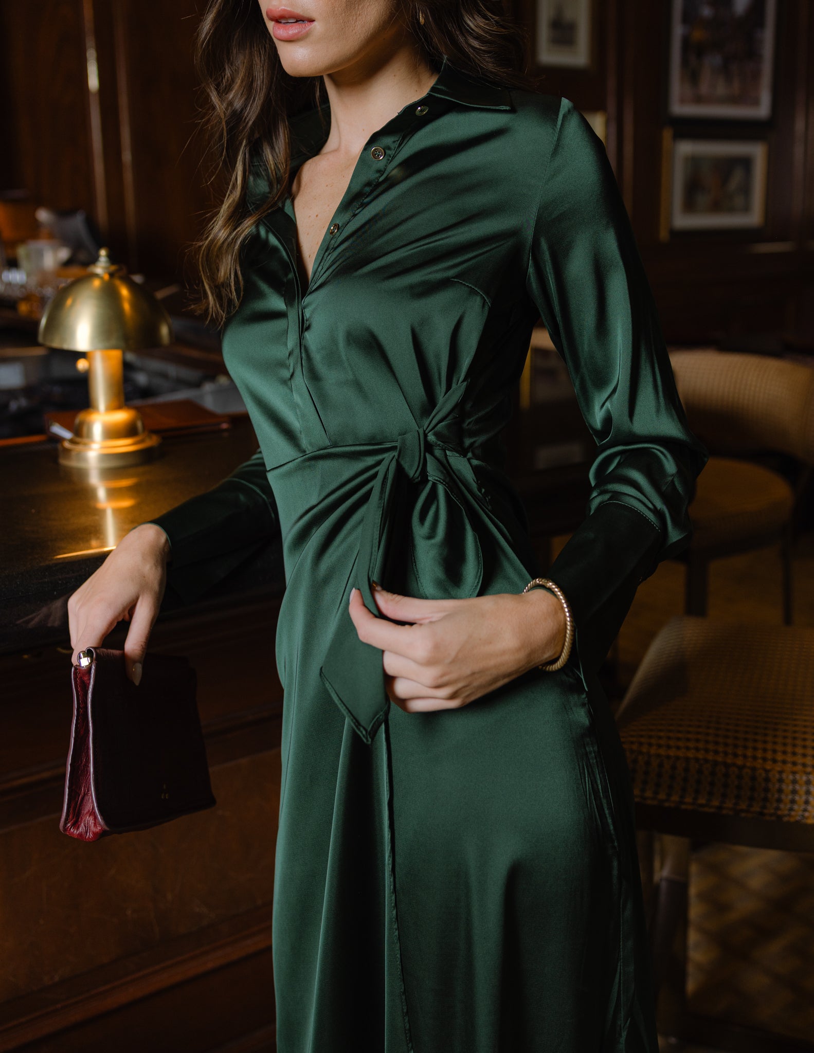 Meet your new go-to women's dress for every festive gathering. The holiday Tilden Dress is crafted from our silky stretch satin, smooth, drapey, and effortlessly elegant. With its flattering tie waist, button-front neckline, and easy midi length, this dress moves with you from dinner parties to date nights. A polished style that feels as good as it looks.