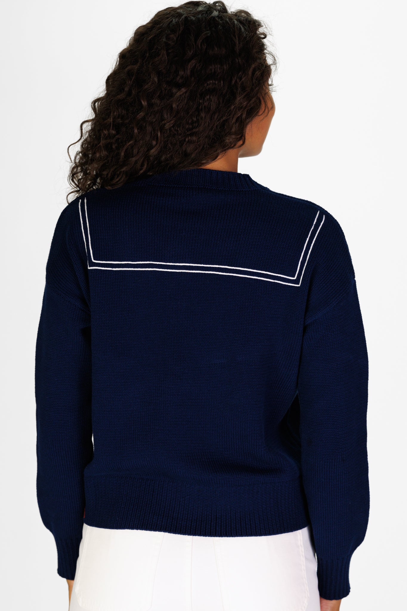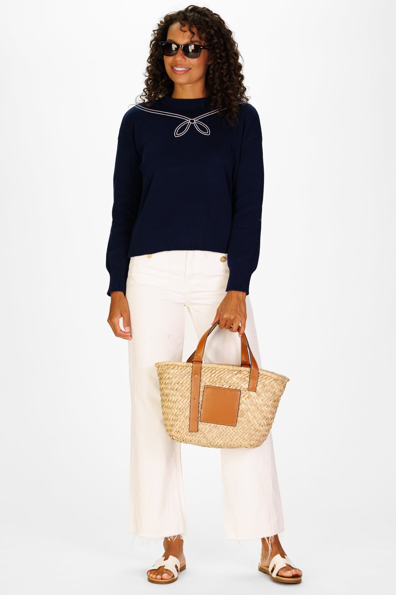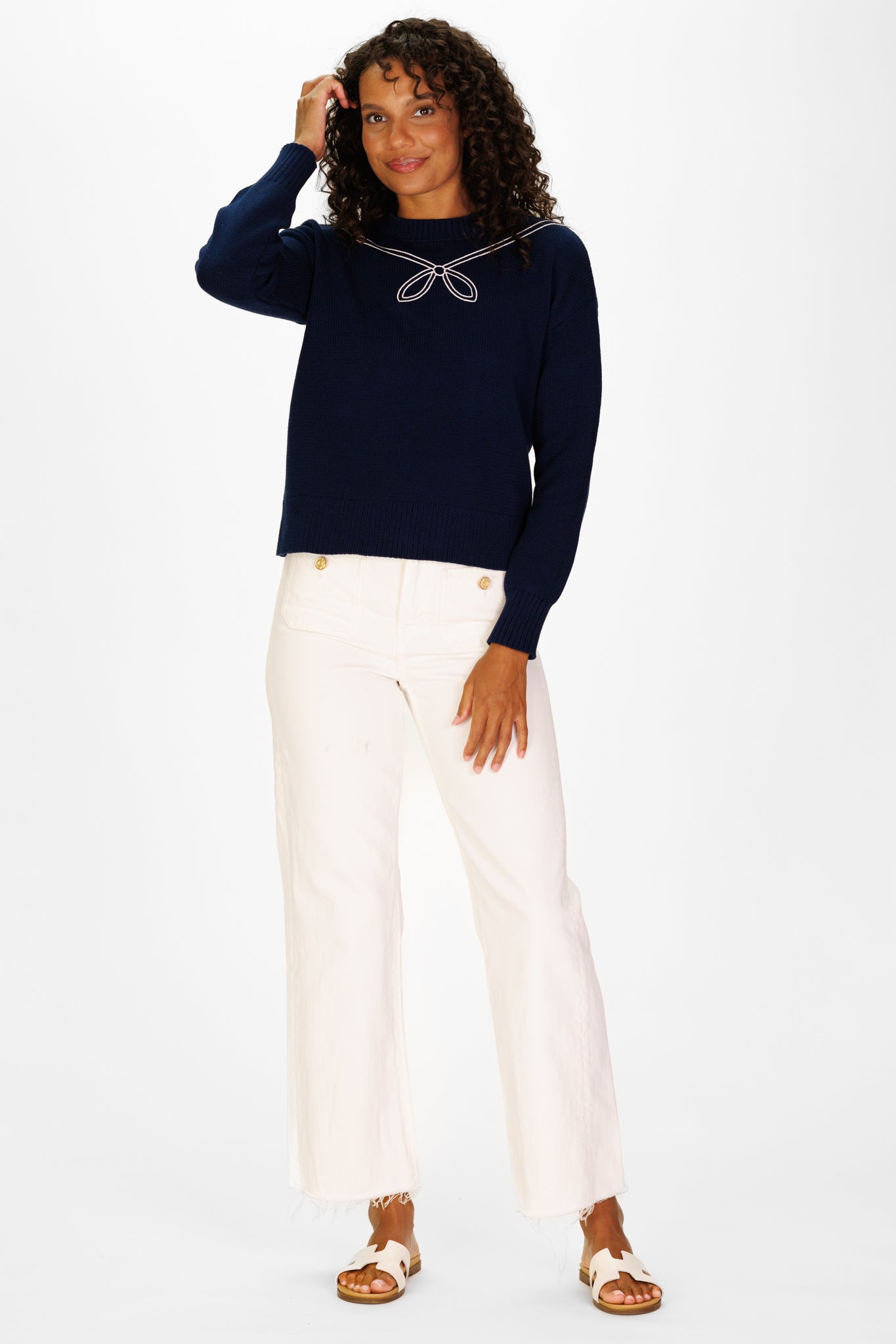 Timeless with a playful touch, the Sailor Embroidered Sweater is crafted from heirloom 100% cotton for a soft, substantial feel that lasts season after season. Its classic crew neckline and clean silhouette let the sailor-inspired embroidery shine, while high-quality construction ensures it stays beautiful wear after wear; no pilling, no dry cleaning, always soft. Perfect for casual weekends, layered looks, or coastal style outfits, this sweater is a wardrobe staple built to endure.