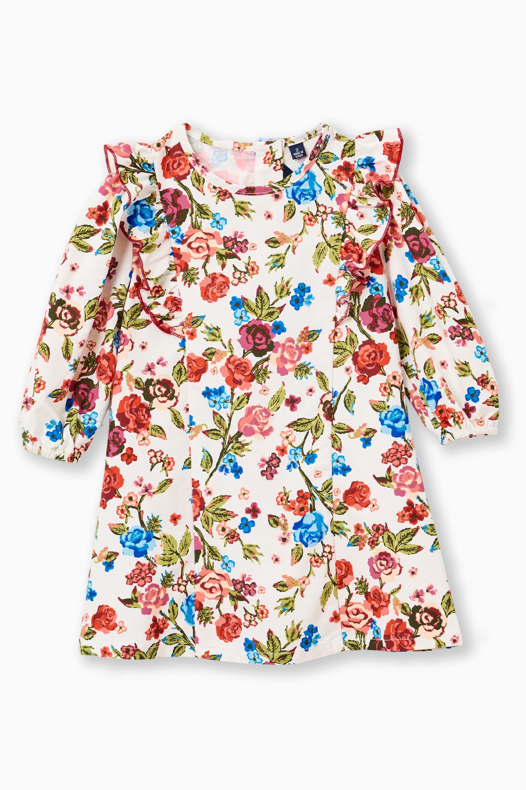 Bright, cheerful, and ready for fun! The Girls Thea Dress brings a garden of color to her closet with its pretty floral print and playful ruffles. Perfect for birthday parties, family outings, and days that call for a little extra twirl.