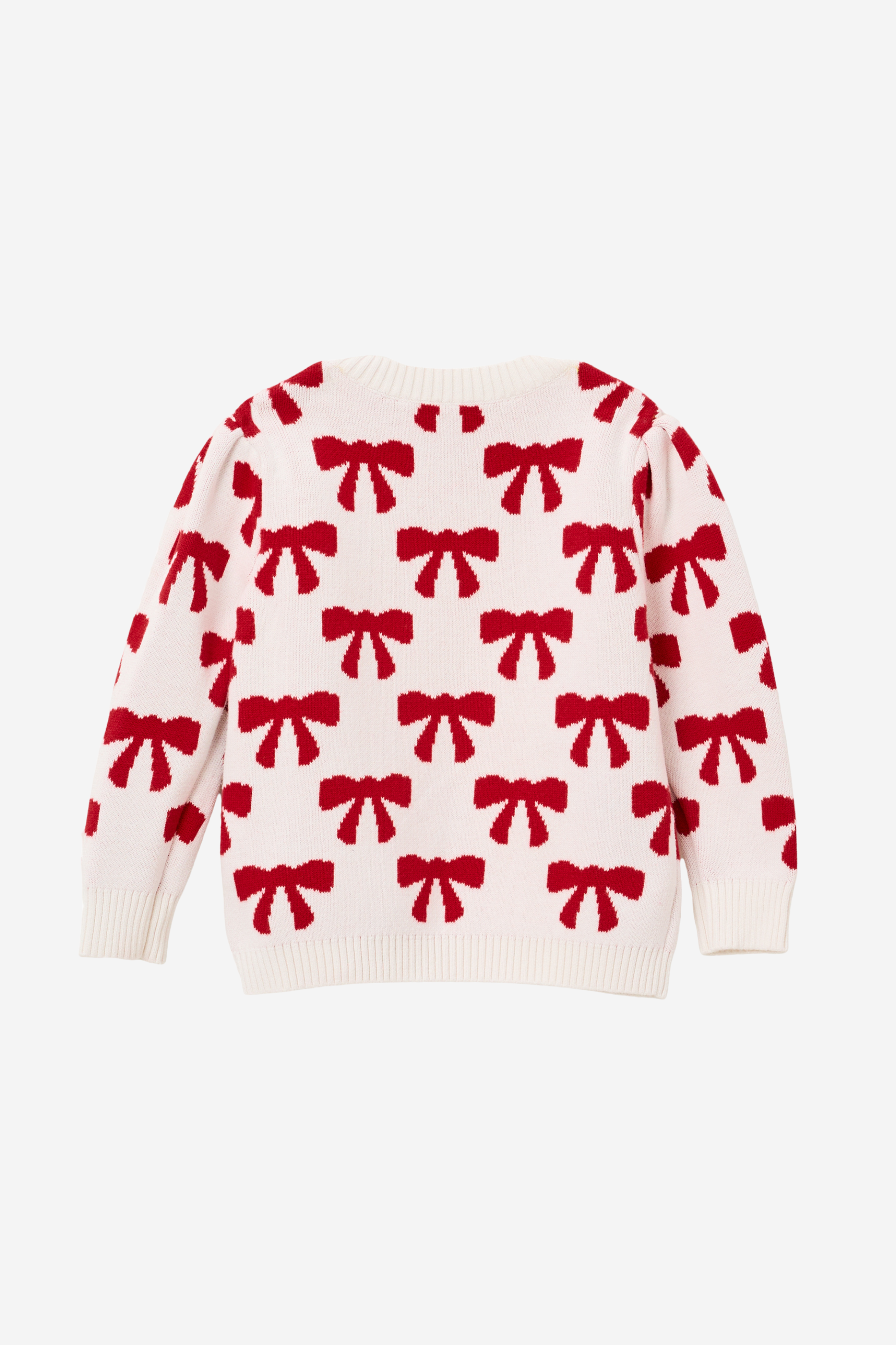 Girls Puff Sleeve Bow Sweater in Ivory