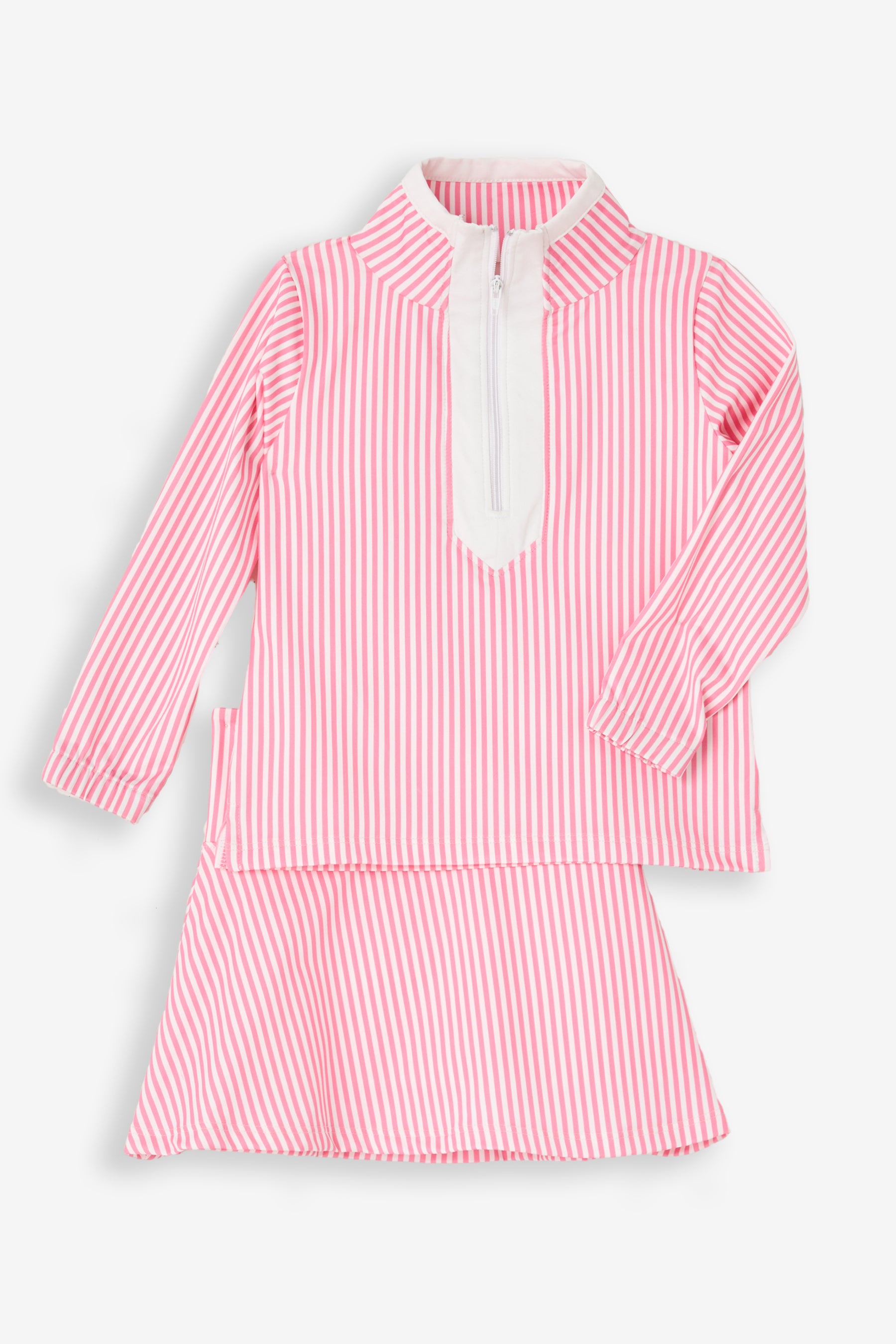 Girls Saylor Skort in Light Pink Seersucker Stripe