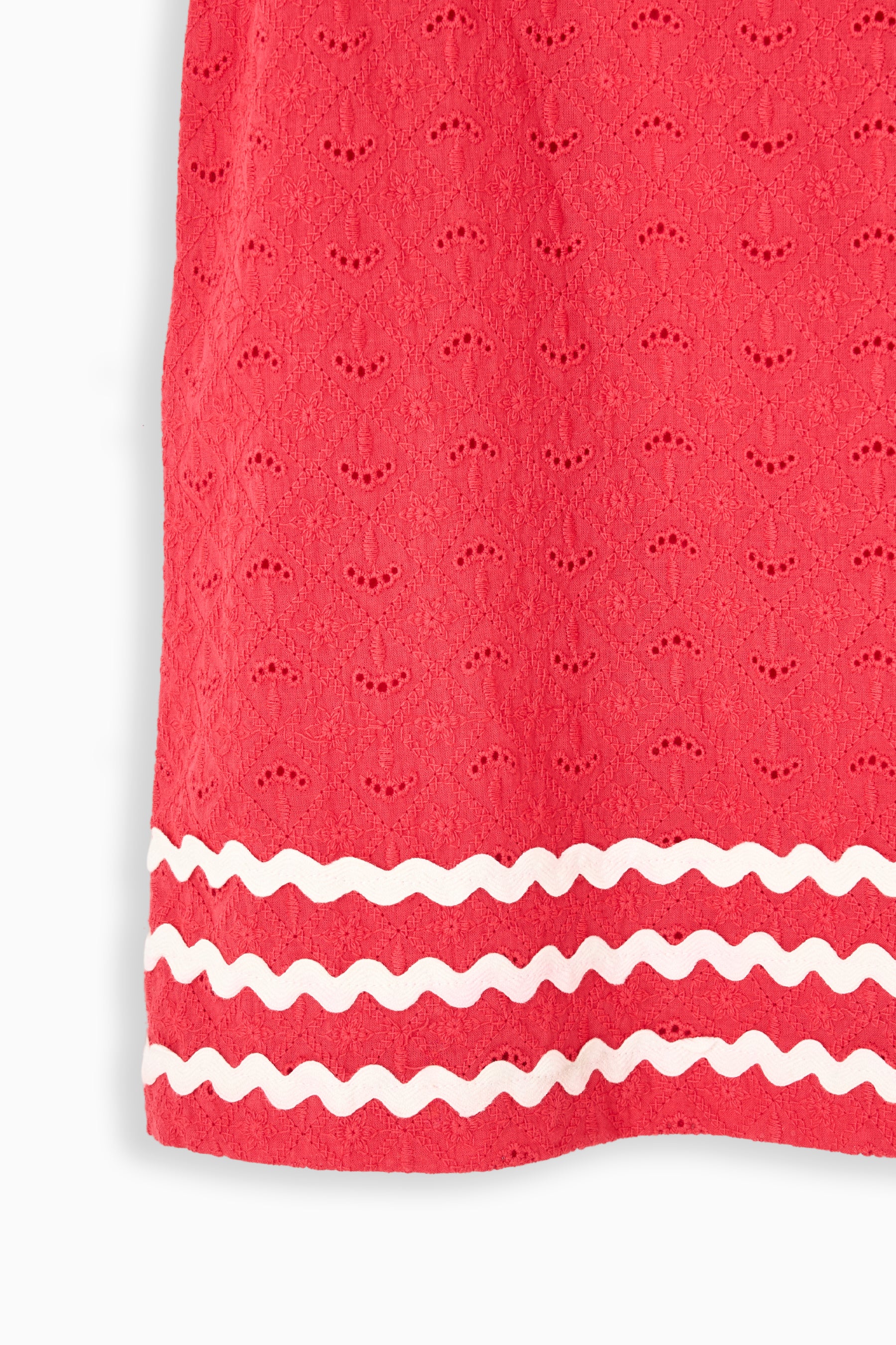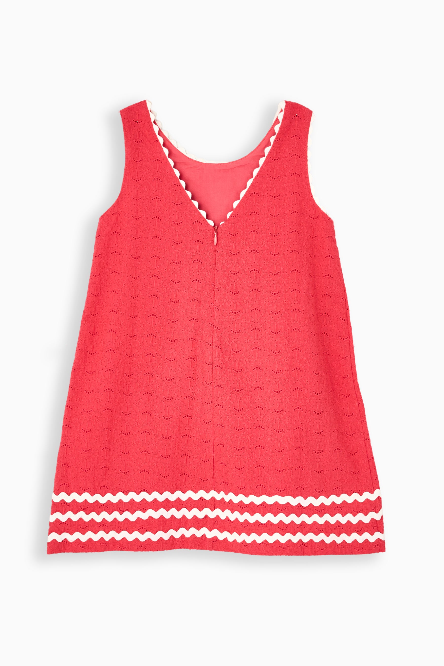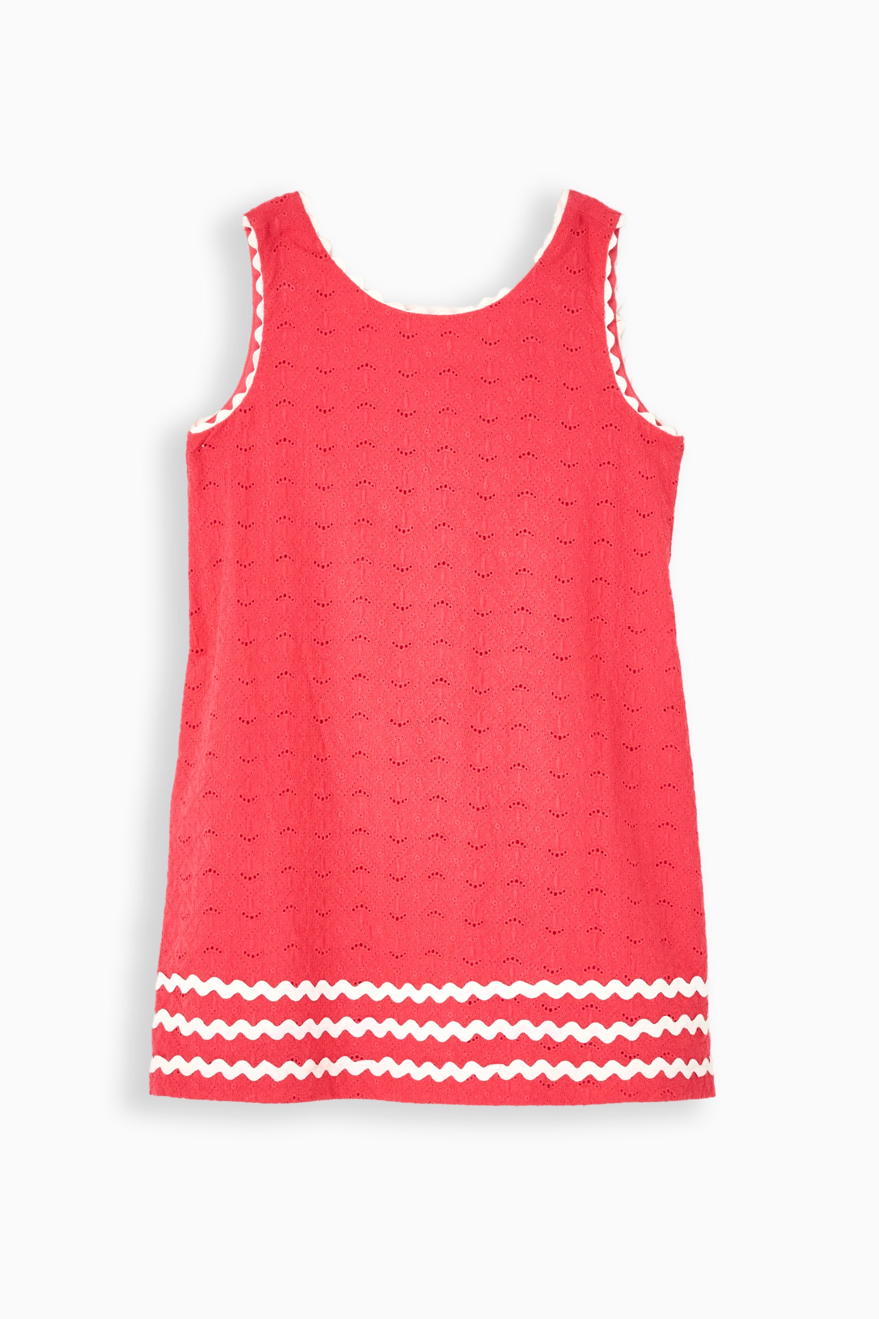Meet the perfect blend of whimsy and classic charm — the girls’ Libby is an sleeveless eyelet dress designed with ric-rac trim and sweet details. This playful silhouette adds a fun, fresh twist to traditional eyelet, making it just as perfect for special occasions as it is for everyday playdates. Stylish, comfortable, and delightfully detailed, it’s a feel-good favorite for sunny days.