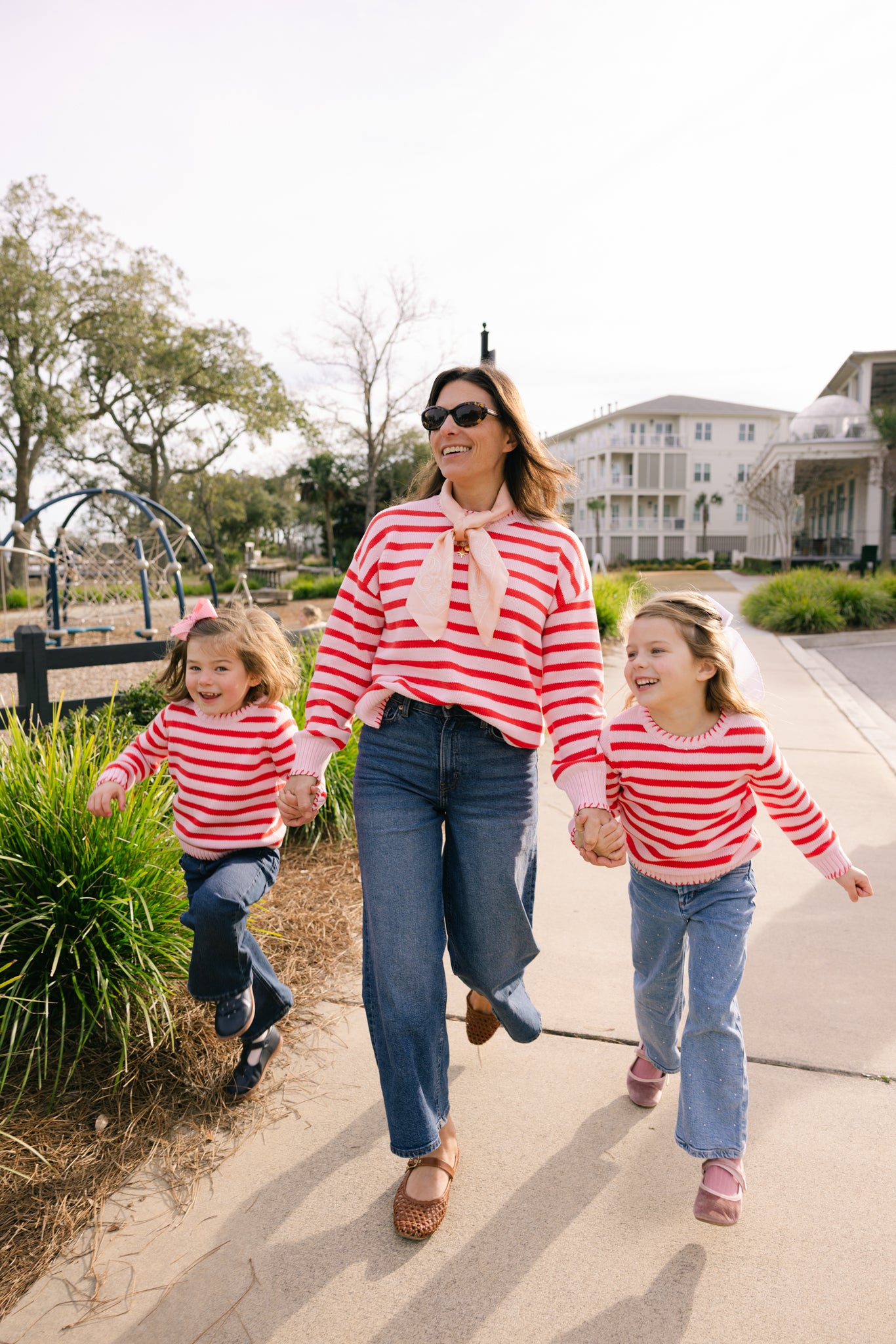 Blanket Stitch Sweater in Light Pink & Red Orange Stripe