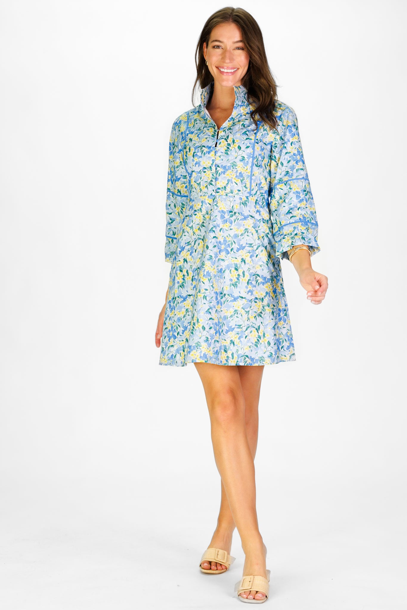 Ellison Dress in Blue Watercolor Meadow