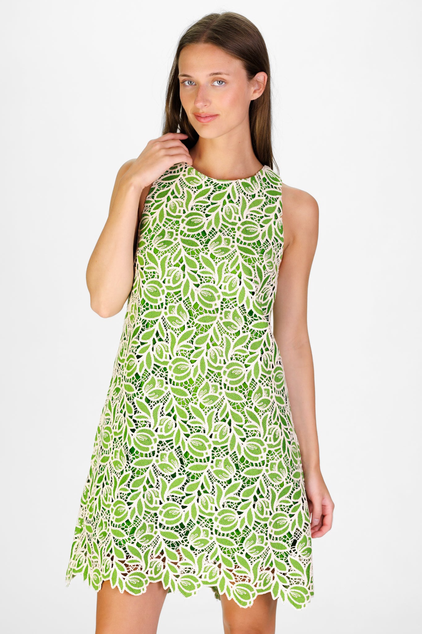 Fresh for spring in vibrant green lace, the women's Lace Caroline Dress is a modern classic designed for effortless elegance. This sleeveless shift dress features a clean, tailored bodice that highlights the intricate tulip lace and signature embroidered hem. Polished yet playful, it’s the perfect spring lace dress for garden parties, bridal showers, luncheons, Easter celebrations, and warm-weather events.