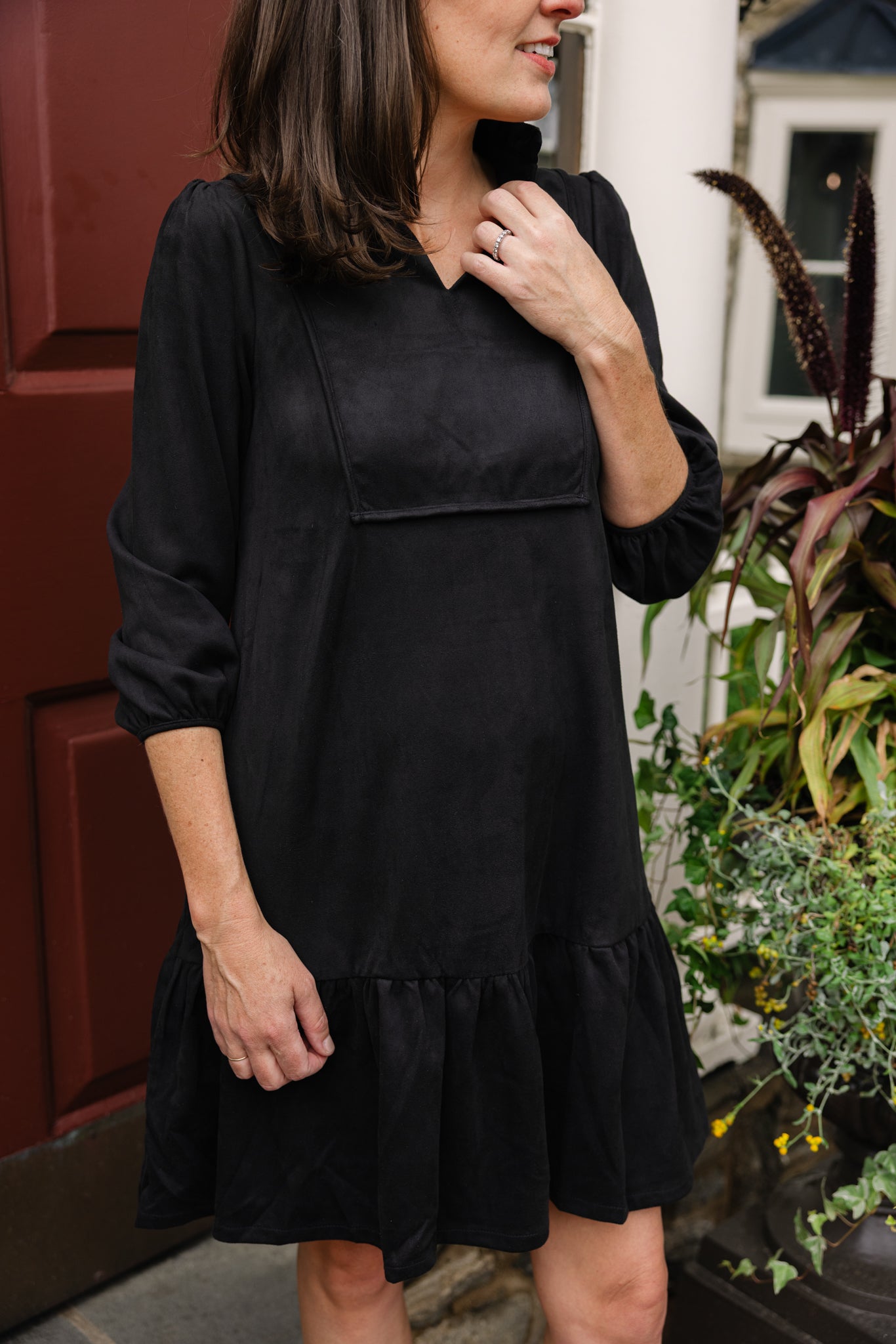 The Katie Dress is back, now in our best-selling fall fabric: Stretch Suede! The perfect transitional piece, ready for all-day wear. With its swingy, tiered fit, the dress offers both feel-good comfort and style, making it perfect for back-to-school drop-offs and back-to-work mornings!