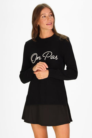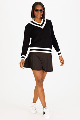 Varsity Heirloom Cotton Sweater in Black and Ivory