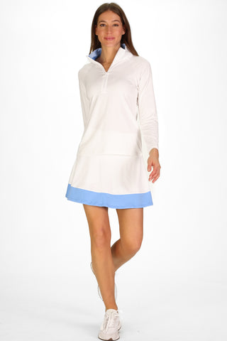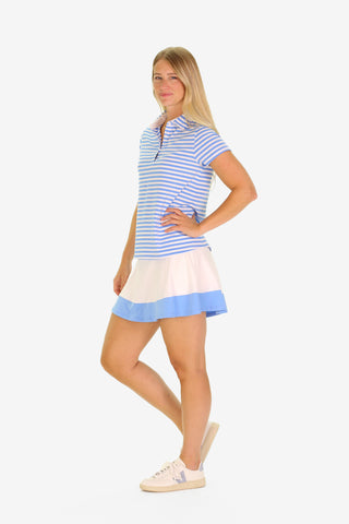 The Pique Misty Quarter Zip in Raspberry Colorblock