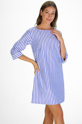 Lennie Dress in Horizontal Navy & White French Terry Stripe