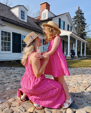 Girls Sleeveless Iris Dress in Pink Seersucker