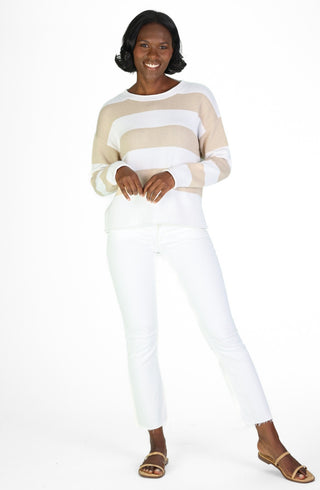 Ivory & Tan Stripe Heirloom Cotton Sweater
