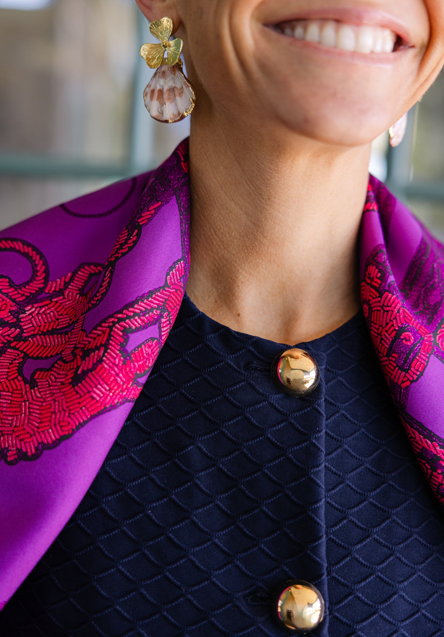 Introduce effortless polish to your wardrobe with the women’s Joyce Top, designed in our elevated Navy Scallops fabric. This sleeveless, lightly tailored silhouette features a bold gold button front that adds personality while maintaining a timeless, versatile look. Simple in shape yet rich in texture, the Joyce is the kind of top that instantly elevates any outfit—equally perfect with denim, skirts, or paired with our Traveling Pant for a showstopping coordinated set.