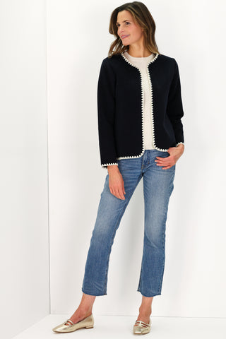 Lilac and Ivory Stripe Cotton Blaire Quarter Zip Sweater