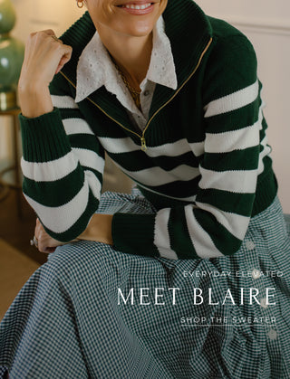Forest and Ivory Stripe Cotton Blaire Quarter Zip Sweater