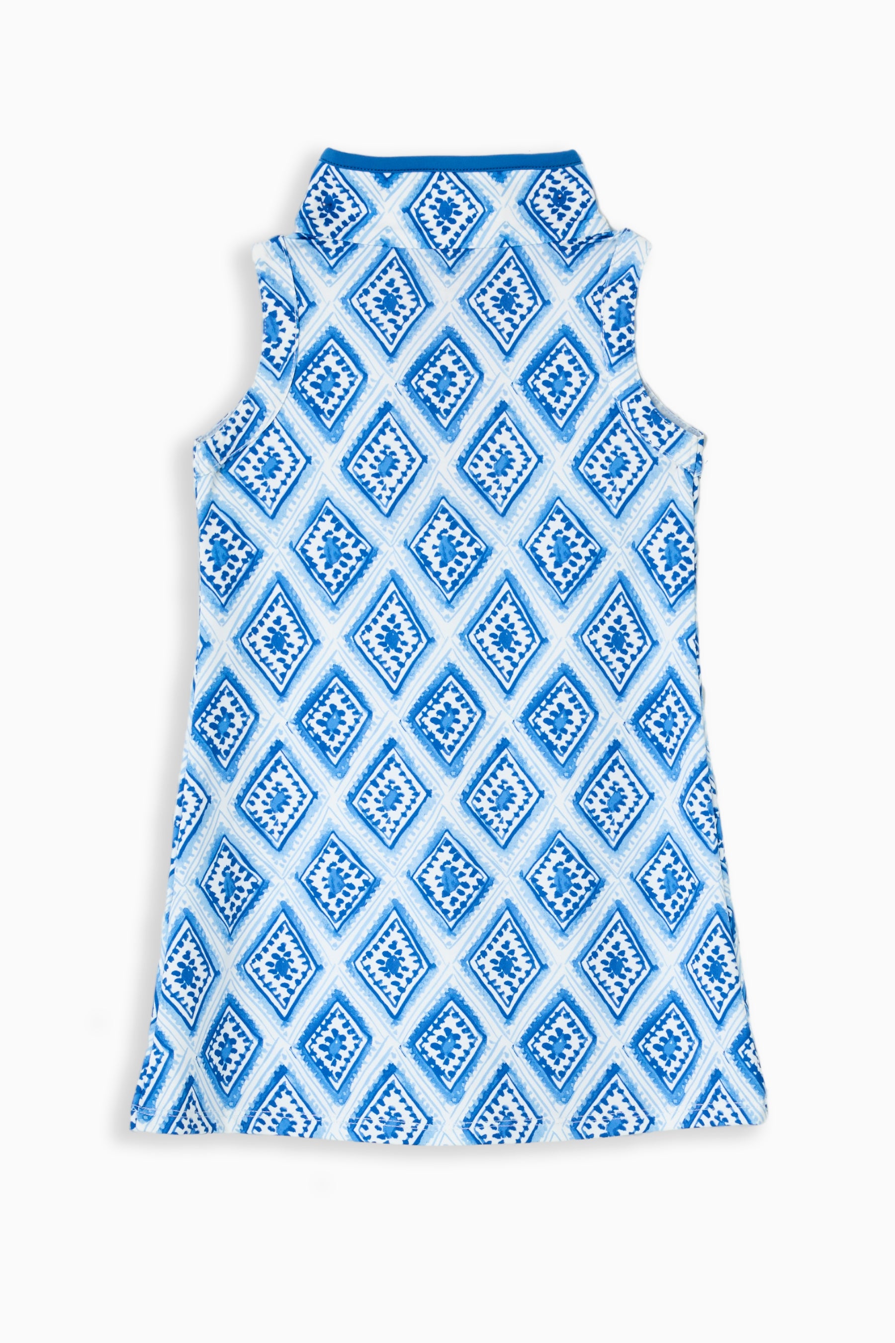 Sporty, playful, and designed for nonstop movement, the Girls Raven Active Dress is her go-to dress for active days. Featuring a sleeveless, easy-fit silhouette and a vibrant Bluebell Trellis geometric print, this dress is perfect for running, jumping, and outdoor play. Crafted from lightweight performance fabric with UPF 50+ sun protection, it keeps her cool, comfortable, and protected on sunny days. Cute, functional, and made for fun, the Raven Active Dress combines style and performance for all-day adventures.